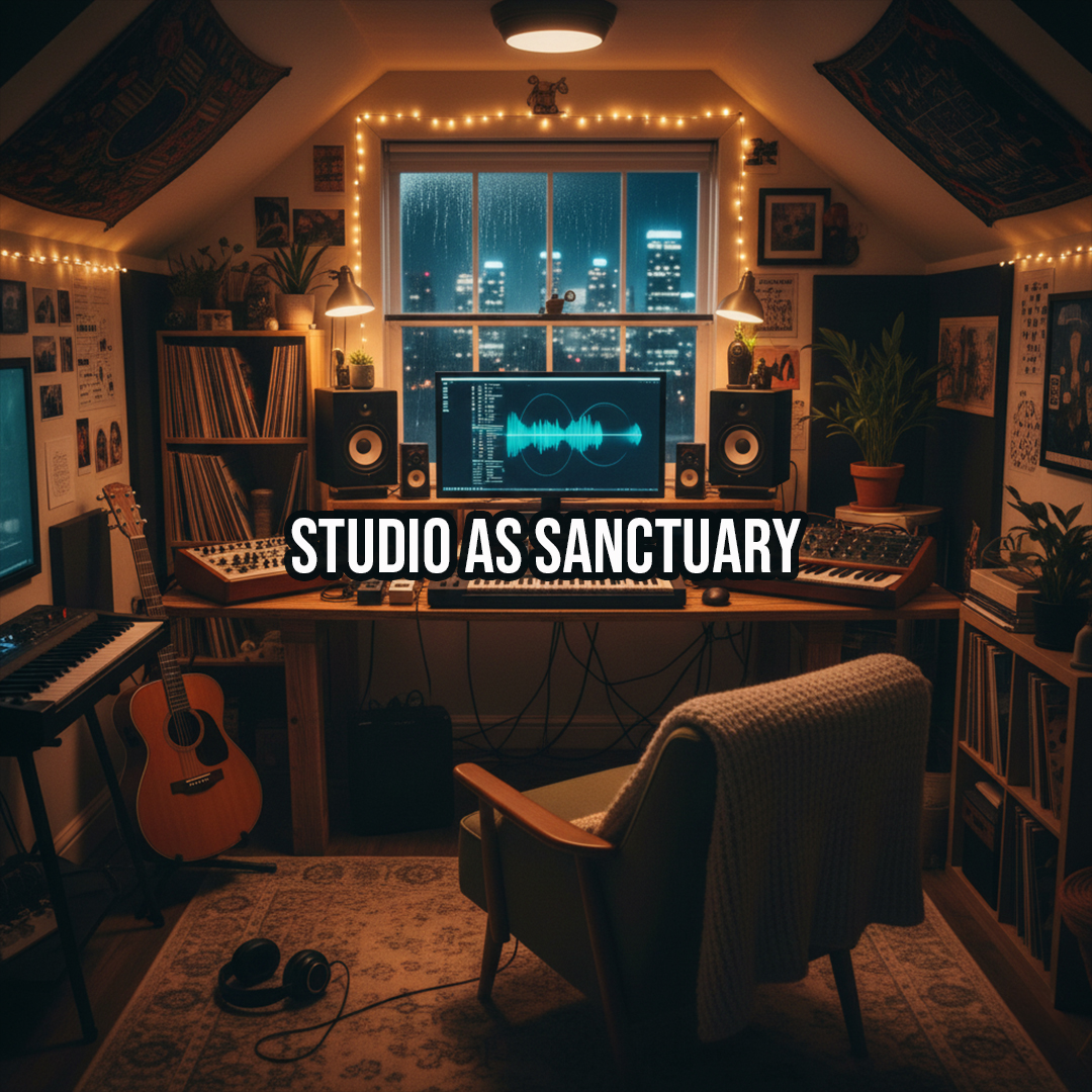 Whether it’s a bedroom outfitted with moving blankets and LED lights, a garage retrofitted with acoustic panels, or a small rented space turned into a creative bunker, today’s musicians are building environments where they feel safe enough to tell the truth in their art.